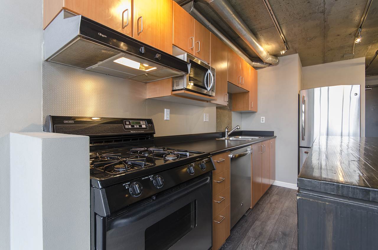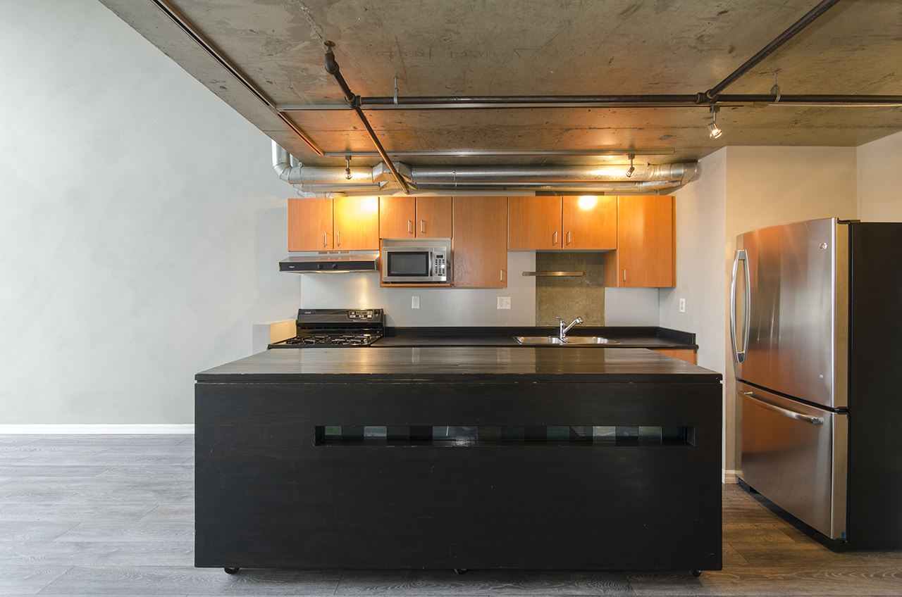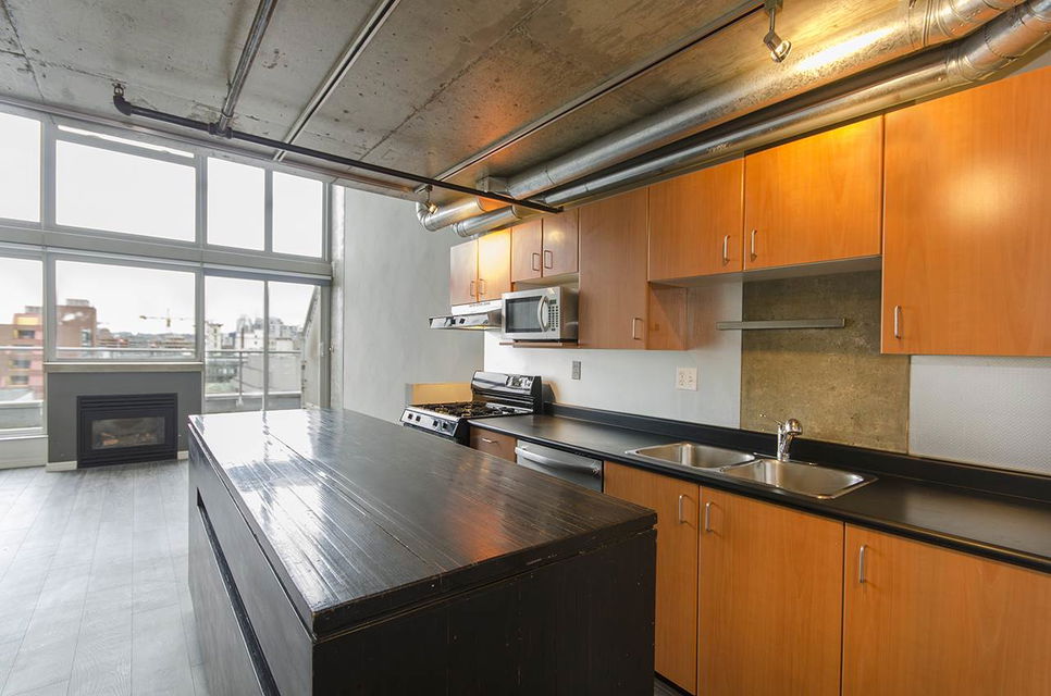 Urban Loft Living at The Edge, near Gastown & Railtown. This S facing double lvl PH loft offers plenty of natural light w 16′ floor-ceiling windows, 2 baths & city views, gas stove & f/p, S/S appliances. Upstairs you’ll find a large master BR that has rm to host a study that looks over the LR. BBQ on the large private balc, 1 parking incl (lockers may be available to rent from Strata) Walk to shopping, restaurants & everything else. Underground secure parking +visitor parking, low strata fees, pets & rentals allowed! 1 of the unique fts of ‘The Edge’ is a separate massive 7000 sq/ft amenities building w a full metal, print, ceramic & wood shop, darkroom, yoga studio & rehearsal space.