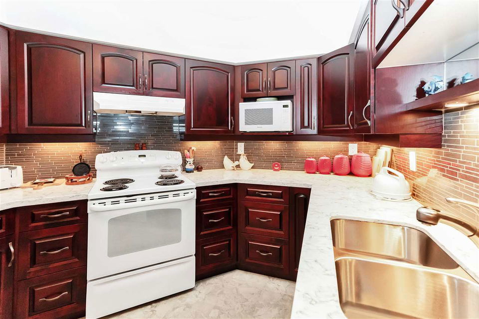 GROUND FLOOR UNIT in Central location, beautiful bright and Spacious, 2 Bedroom, 2 Full Baths! 2nd bdrm has no closet. Open concept, tastefully updated Kitchen with tons of cabinets and granite-like countertops, massive SOUTH Facing fenced yard, Gas Fireplace, Master Bedroom can fit a king size bed, walk in closet, and luxury en suite with deep long soaker tub and separate shower. Walking distance to Central Park, Patterson Skytrain, Crystal mall, and Chaffey Burke Elementary. Book your private showing today! *Future redevelopment potential* OPEN HOUSE APRIL 28 & 29 SAT/SUN 2-4PM