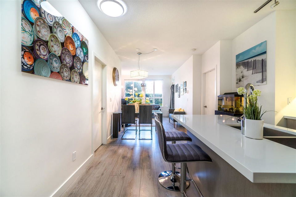 Regan’s Walk built by Marcon offers this spacious ground floor 2 bedroom 2 bath home! 5 mins walk to Burquitlam Skytrain Station, Safeway, Parks, Schools, YMCA center and shopping plaza. Located in the heart of an exciting new neighbourhood emerging around the Burquitlam Skytrain Station & the Evergreen Line, this open layout features quality laminate flooring, a gourmet kitchen with quartz counters and sleek stainless appliances, courtyard playground and much more. Rentals Allowed, 2 Pets ANY SIZE OK. Easy to show! !