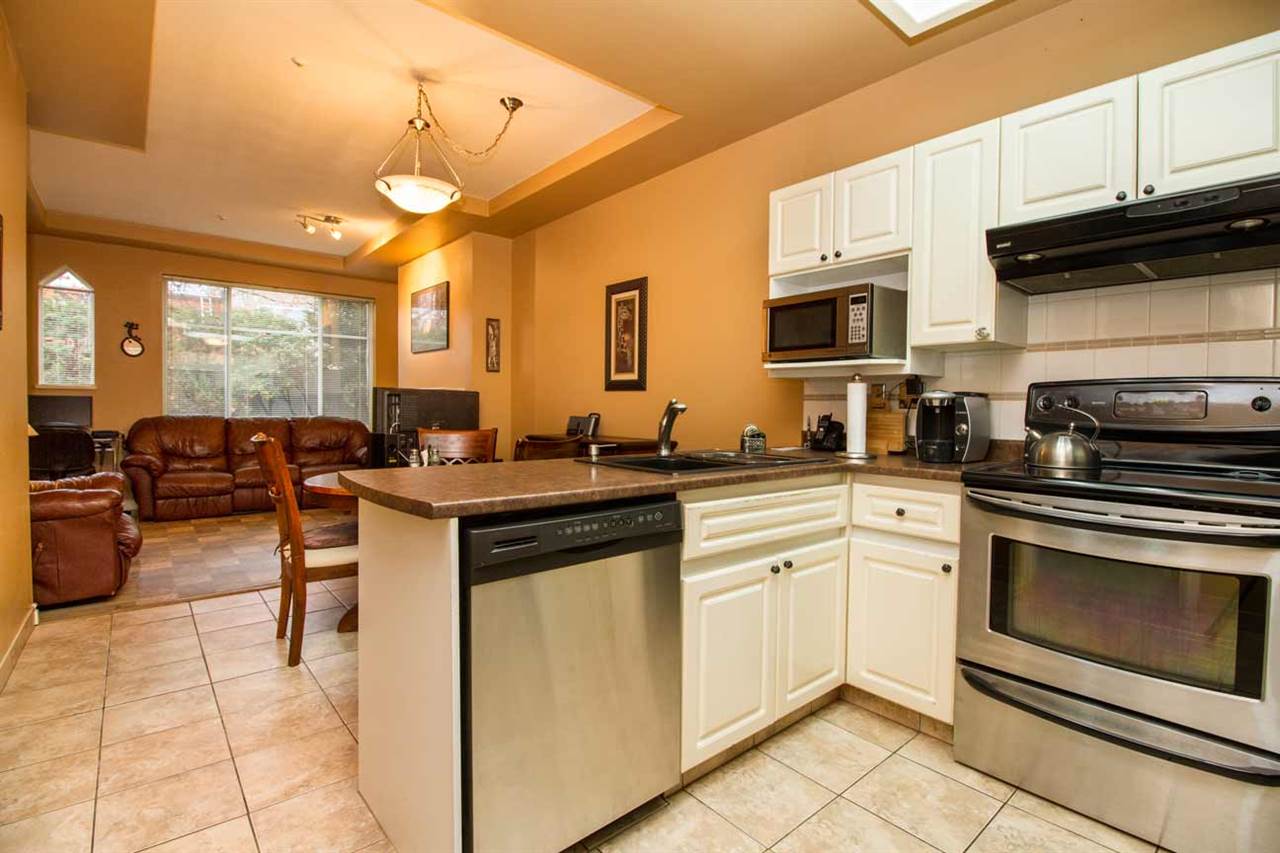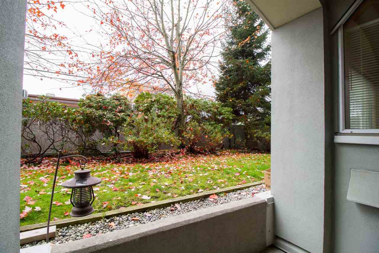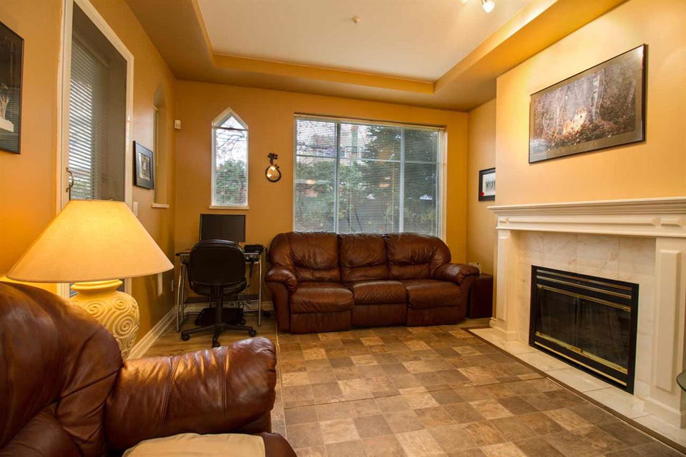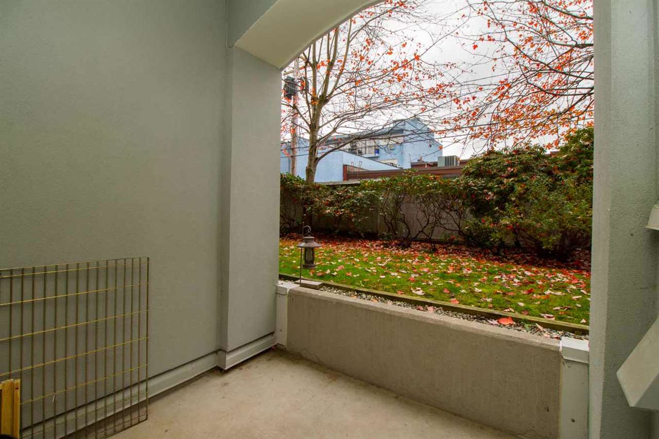 1 BR home facing West, w/private deck area facing a nice green belt. This home is beautifully updated with newer stainless steel appliances, counters, lights, paint etc. shows very well. Nice gas fireplace. High quality washer & dryer, lots of storage in the suite. High ceilings give a spacious feel to this open floor plan condo. Hot water heat inlc in maintenance fee. Well run rainscreened building. 1 pet 5kg max ok, rentals at max. Building has common room, extra large bike room & extra large storage locker, 1 parking incl as well. Central location at 49th & Fraser, so close to everything. 3D TOUR LINK goo.gl/khBcA2