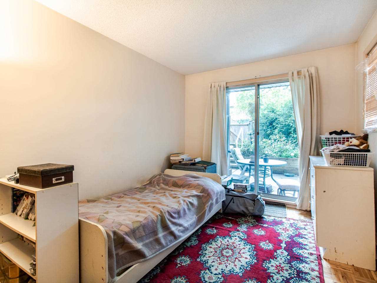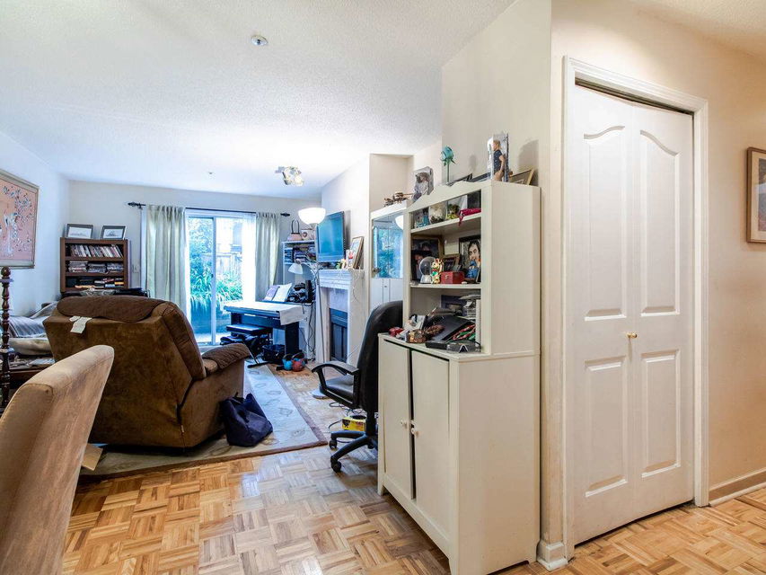 2 BR & 1 bath ground level condo with a huge outdoor private fully fenced patio to enjoy the sunshine. With a private entrance from the street. This home is in original condition, but a great opportunity for you to renovate & make your own with lots of potential to add value with renovations. Located close to the Joyce skytrain. Insuite washer & dryer, 2 parking, 1 locker, no rentals, 2 dogs 16″ or less or 2 cats ok