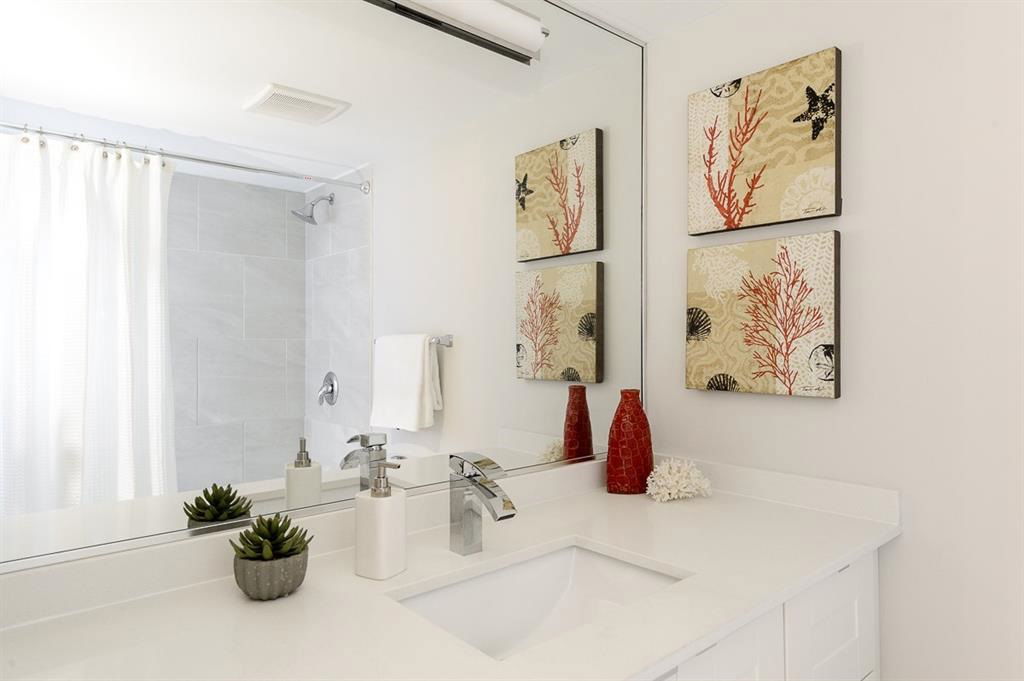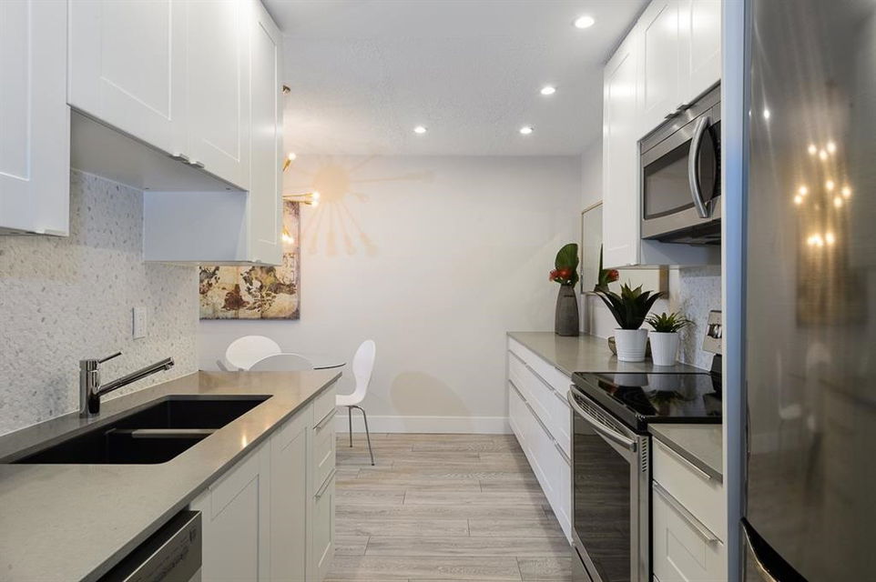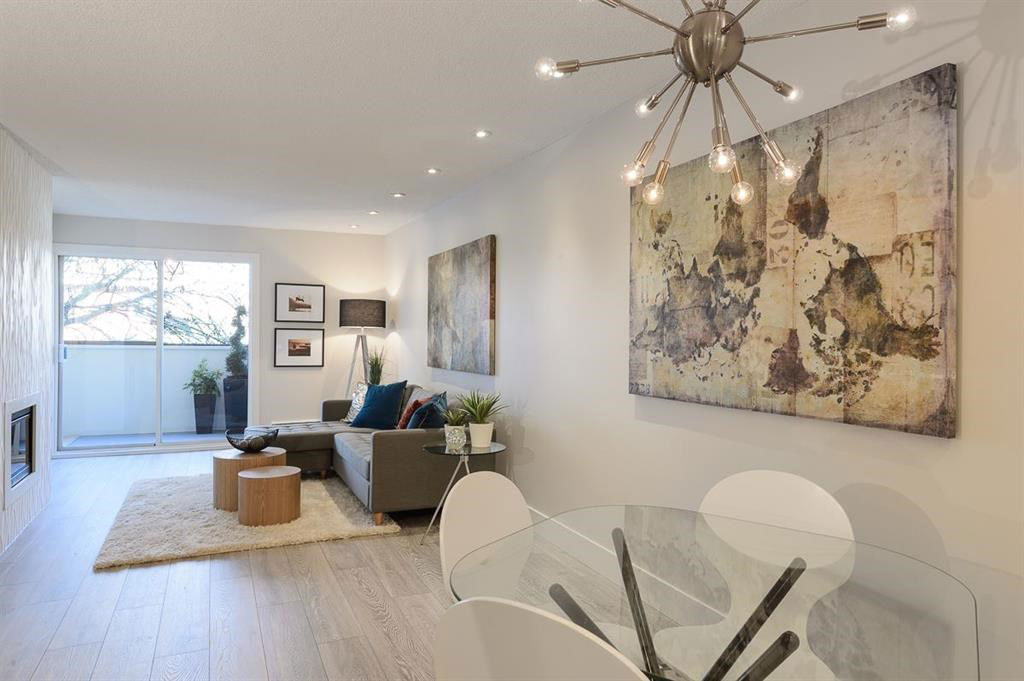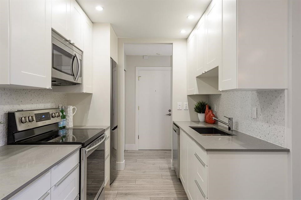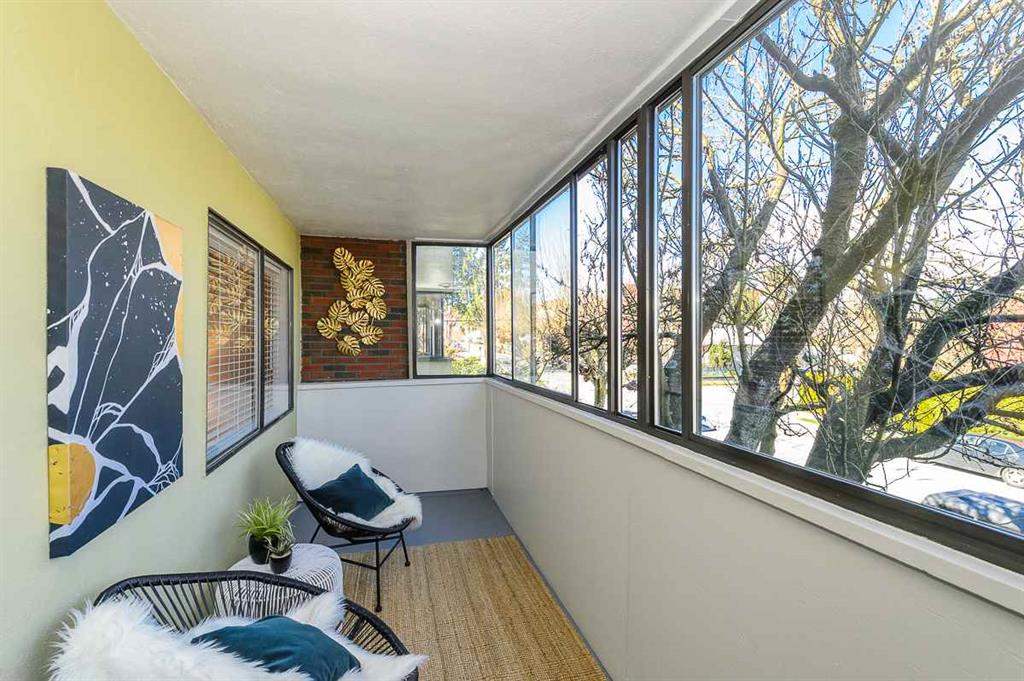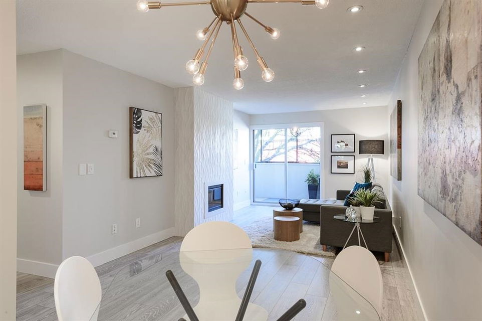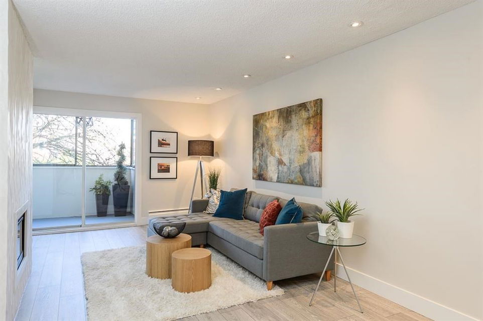 Beautifully renovated 1 BR in desirable Grandview walking distance to Commercial Dr! Almost everything new Kitchen, Bath, Paint ,Floors, SS Appliances. Kitchen features quarts counters with large double sink. High quality modern laminate throughout gives this home a very welcoming feel! Bathroom is simply stunning, wall to wall mirror and counters provide lots of room and light! Nice electric fireplace in living room. BONUS: large enclosed balcony give tons of storage or extra living space but balcony can be opened up if buyer wants. No Dogs 1 Cat OK, No Rentals. Deprecation report 2015. 1 Parking 1 Locker. Updated roof, Balconies 2002, Exterior painted & caulking 2013. 3D Tour – https://rem.ax/2FSJmME