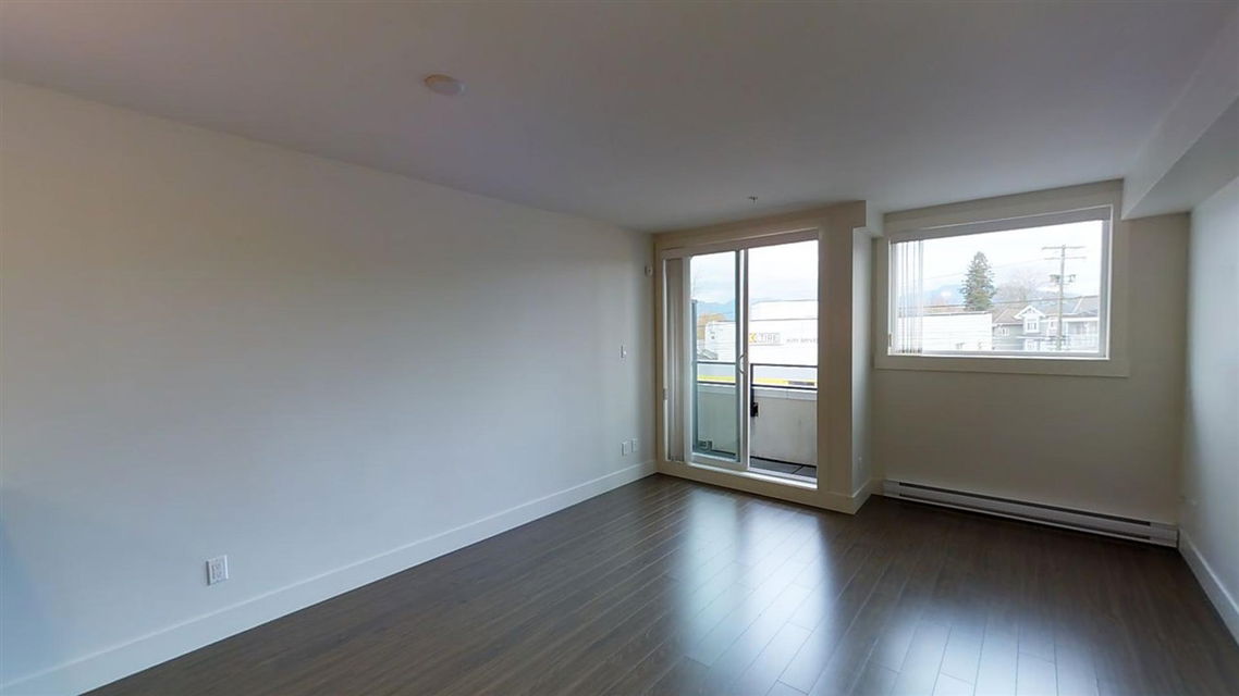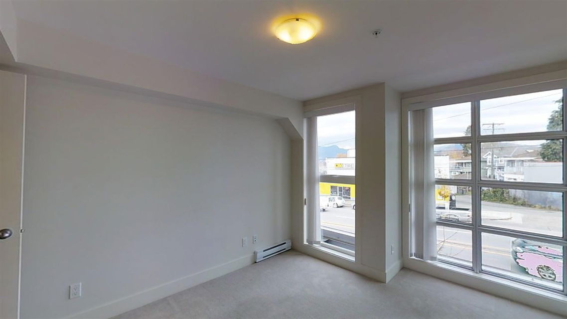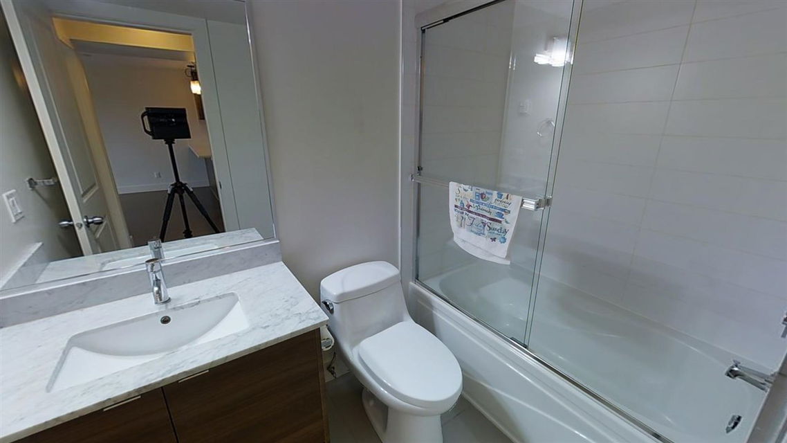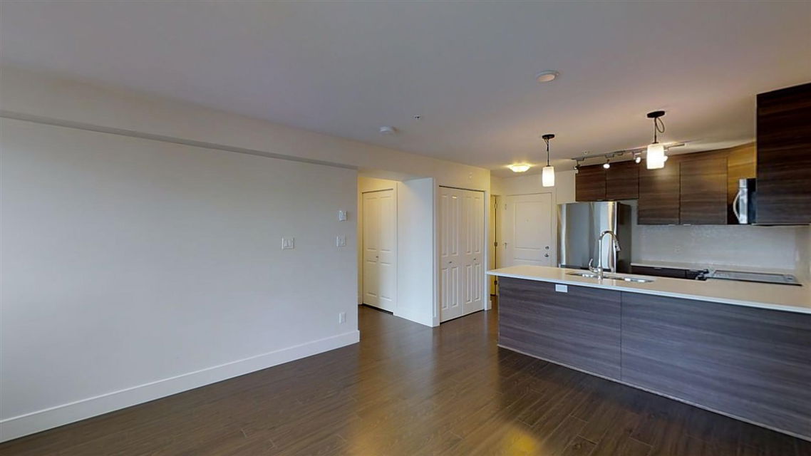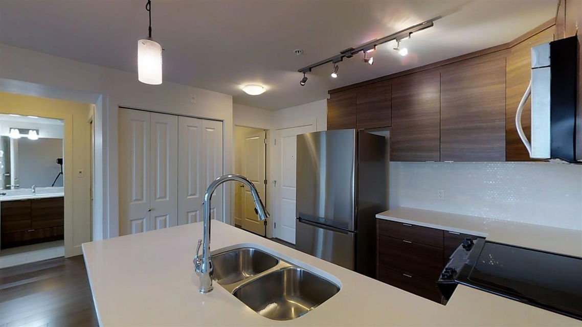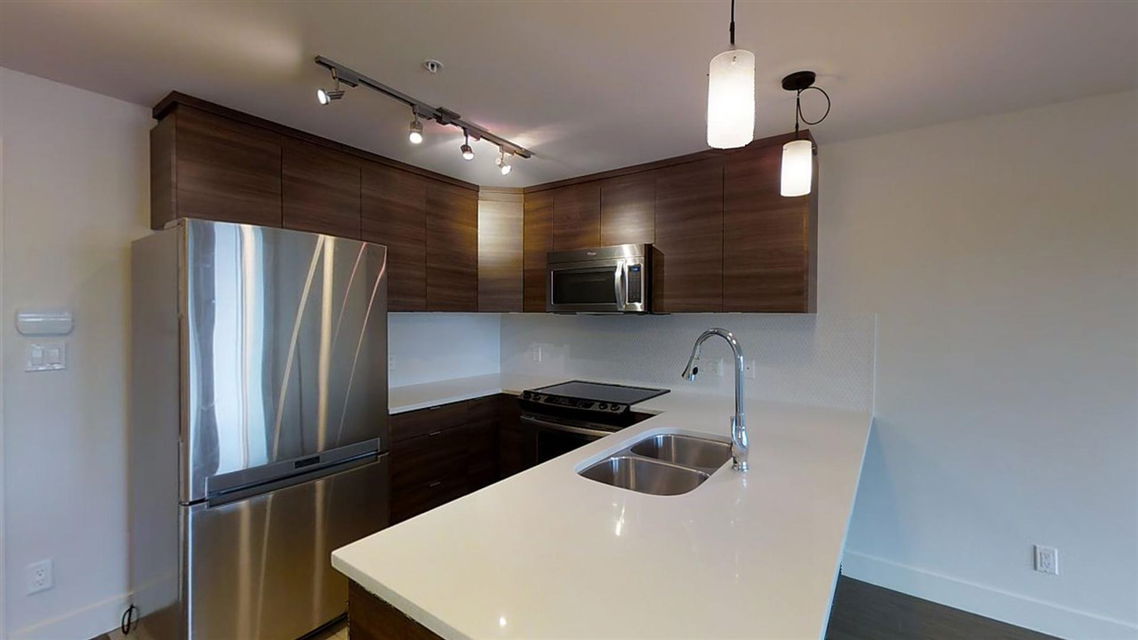 1 BR & Den facing north w/ limited mountain view, open layout, this home is conveniently located at the corner of Kingsway & Commercial. You are in the middle of everything, so very convenient to shopping, transit, Nanaimo skytrain, restaurants etc. This home has a small balcony overlooking Kingsway. Home is extra clean, like a brand new place. Spa like bathroom is luxurious, floor to ceiling windows for lots of natural light, high end stainless steel appl, quartz like countertops, washer & dryer, large bike room & a locker, (sorry no parking). Great investment or 1st home. Rentals limited to 9, 1 pet any size OK. 3D TOUR LINK – goo.gl/zMQl0z
