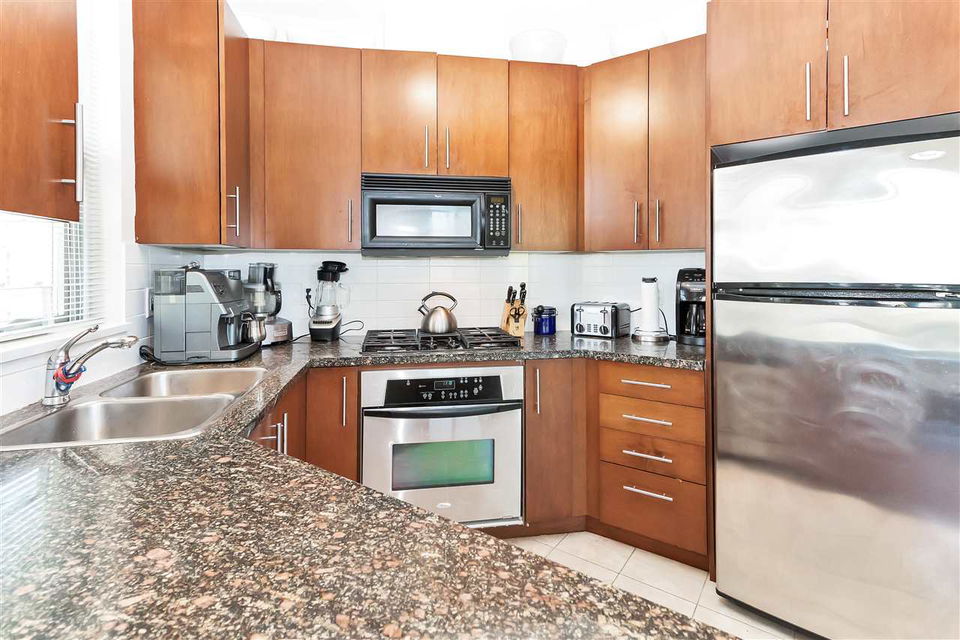 SOUTH FACING CORNER UNIT 2 BR 2 FULL BATH PLUS DEN. Sitting on a quiet street in Joyce Collingwood, floor-to-ceiling corner windows fill the living space with light overlooking the park and garden. Features include 9 foot ceilings, modern open layout, granite counter-tops, in-suite laundry, stainless steel kitchen appliances and a gas range. Steps to Joyce Skytrain, Highway 1, Central Park, numerous restaurants, shops and recreation facilities. 1 Cat or Dog allowed, Rentals welcome. Dep report 2017. Check out 3D Tour -https://goo.gl/B29V27