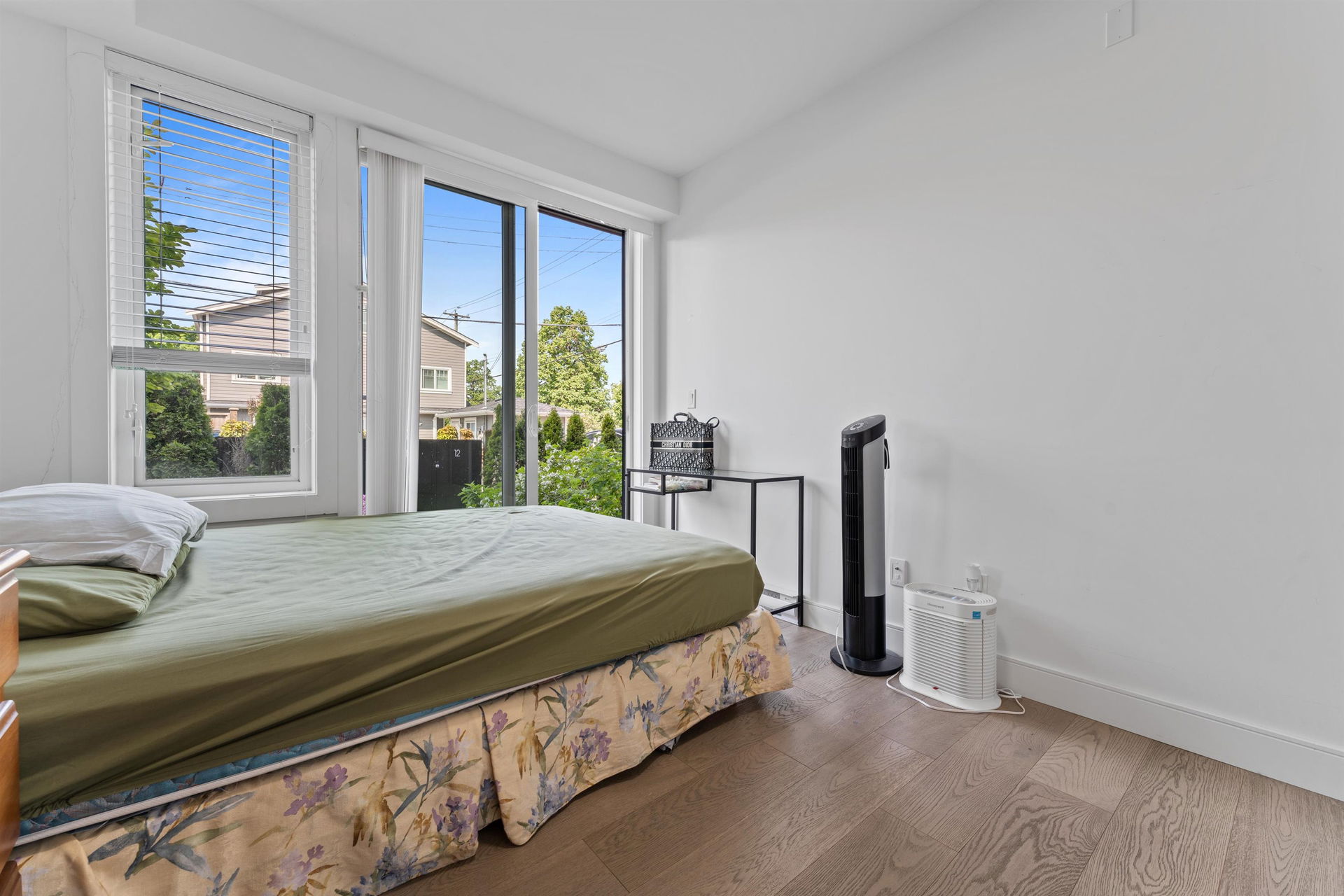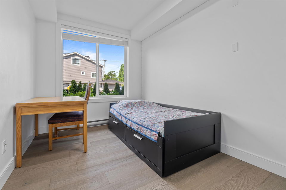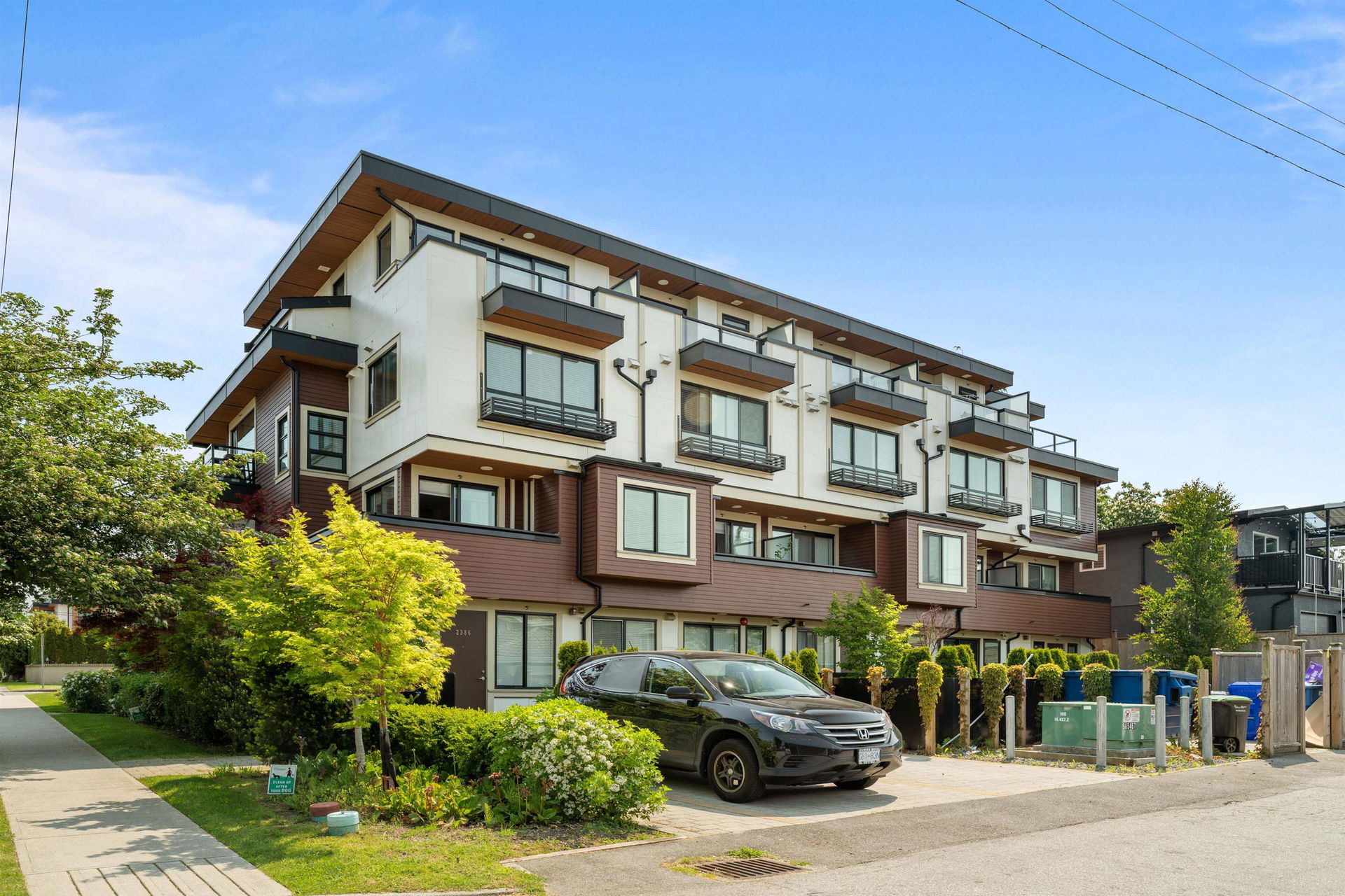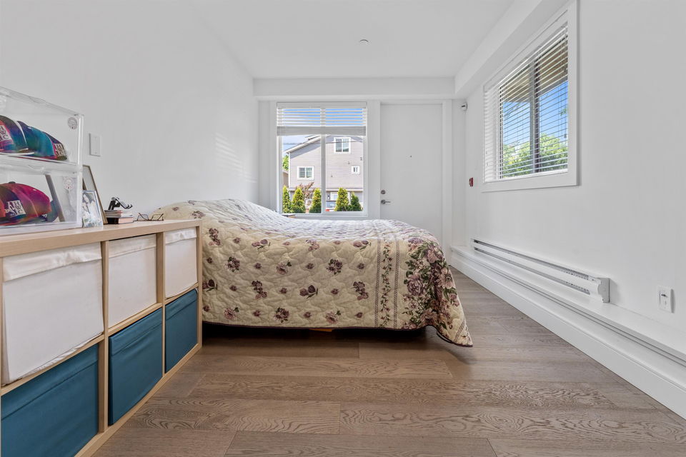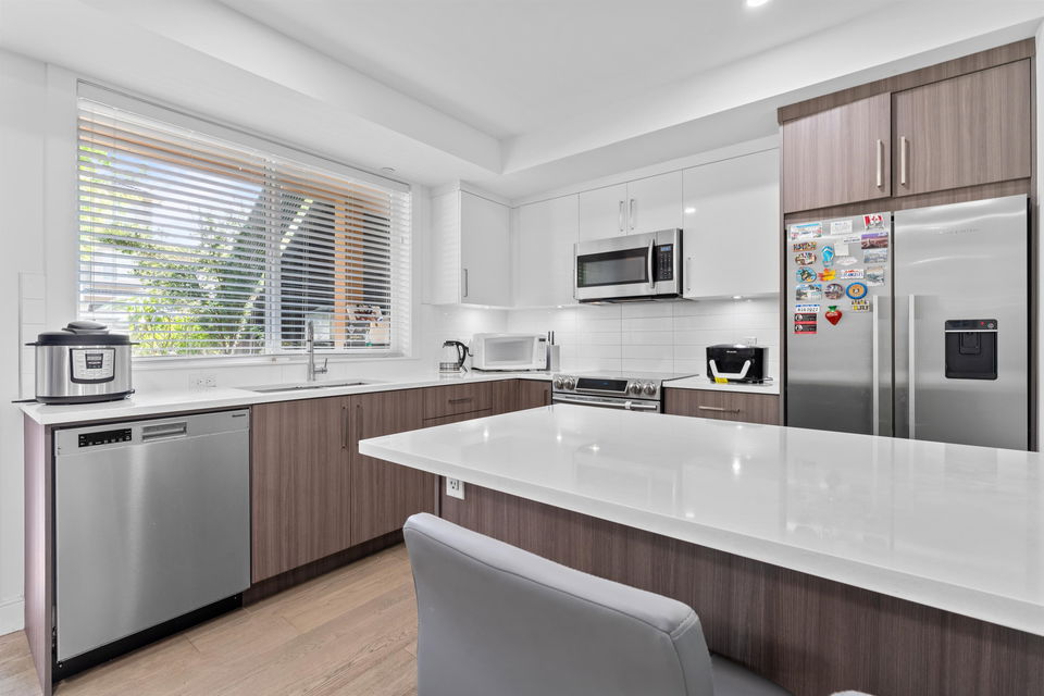3 BR 3 bath one level townhouse with 2 exterior entrances. Use all 3 BR’s yourself or rent out the self contained legal 1 BR suite with private exterior entrance and private shared laundry between the 2 units. This home is very well kept, shows nicely, high ceilings, 3 outdoor ground level patios, 3 storage bins, 1 cat or 1 dog any size ok. Strata bylaws do not prohibit short term rentals