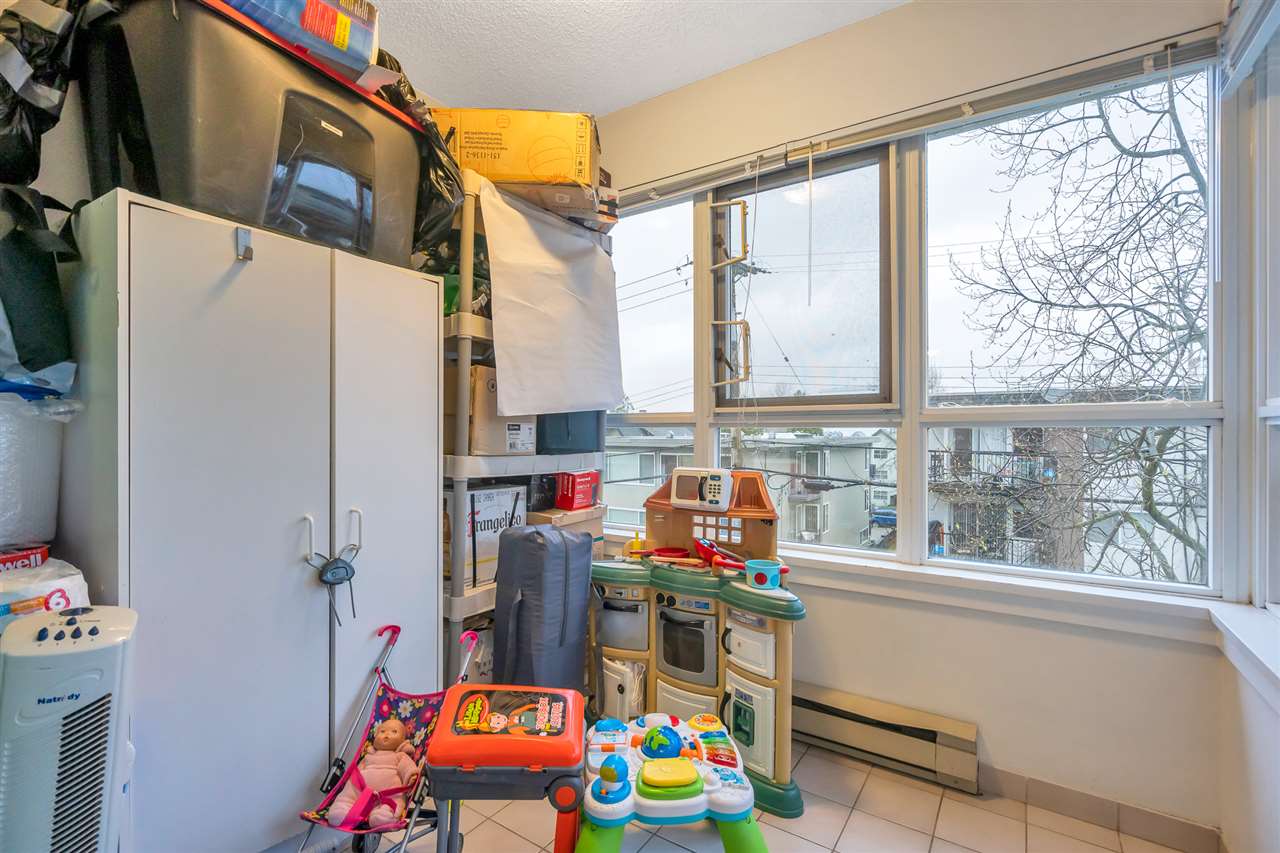 GREAT OPPORTUNITY to own this spacious 2 BR & 2 Bath / smart, efficient layout w/ atrium/flexspace and lots of storage. Quiet NE corner unit w/balcony (BBQ allowed). Live in a well managed concrete building, with valuable upgrades from top to bottom w/ newer roof, elevators & RAIN SCREENED. Steps to both Commercial Dr & Hastings neighborhoods w/ great cafes, restaurants, parks, shops & schools. Secure Underground Parking & storage. Pets & rentals welcome.