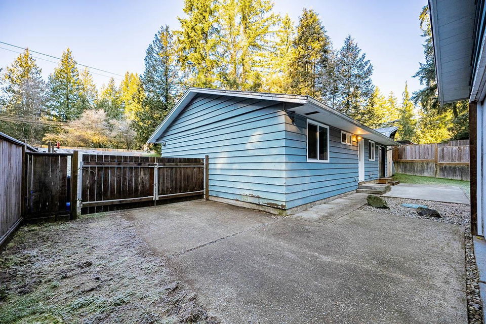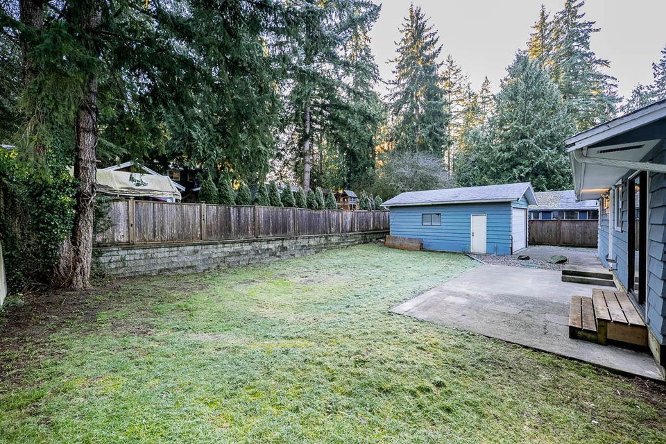 Want to own a large lot with a 3 bedroom rancher for under 1 million! This is it! Exceptional value in this 3-bedroom modern rancher in prime Brookswood. The bright open layout features an updated kitchen and laundry room, both with newer appliances. Enjoy the comfort of a renovated bathroom with in-floor radiant heat and updated windows. A standout feature is the 16’x22′ detached shop with 220V service—perfect for hobbyists. The private sunken driveway provides a quiet buffer and ample parking for an RV. This property is the best-priced detached home in the area, offering modern finishes and a functional shop that sets it apart from recent nearby sales. Just one block from local shops and transit. (Pictures with furniture are virtually staged)