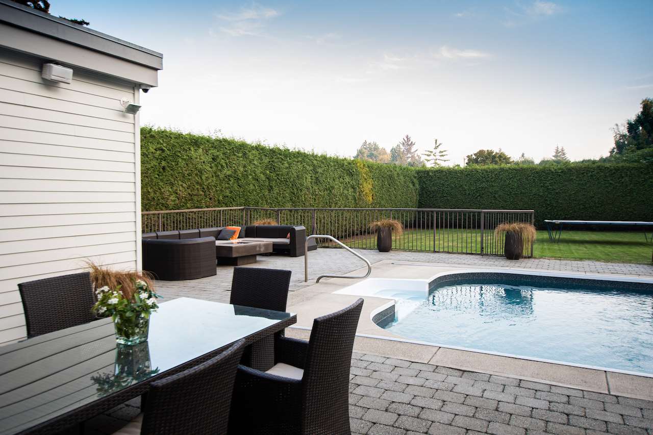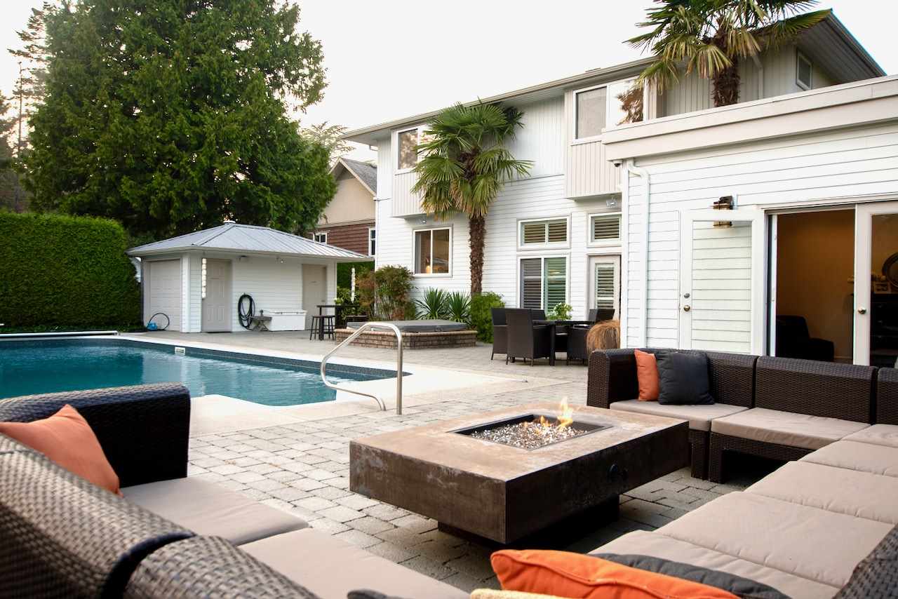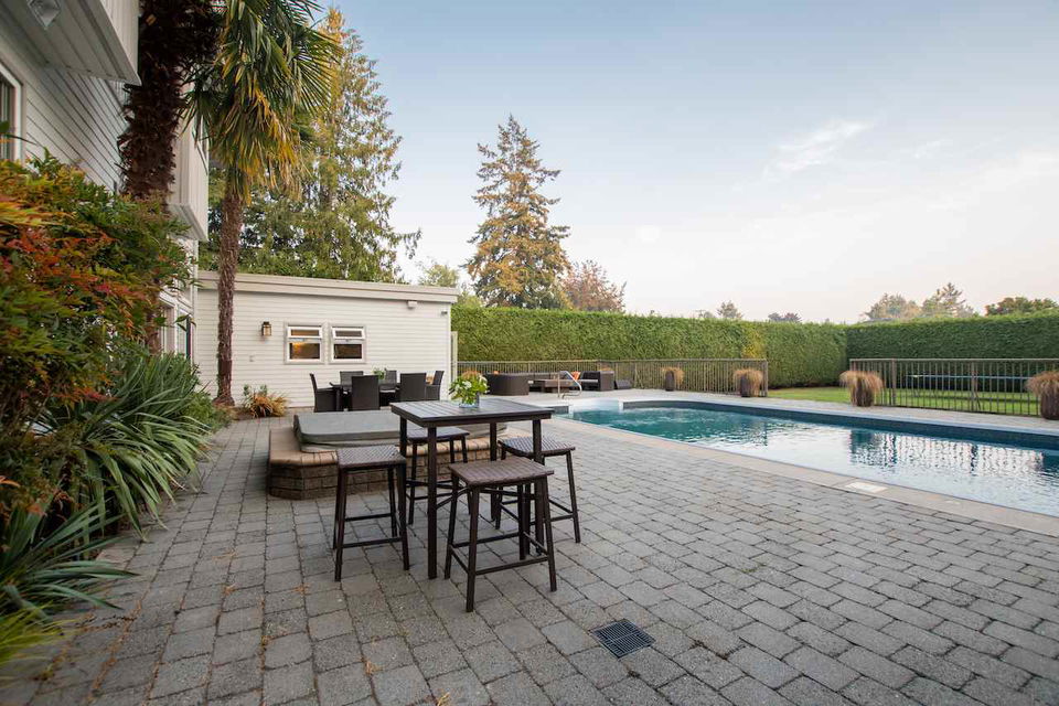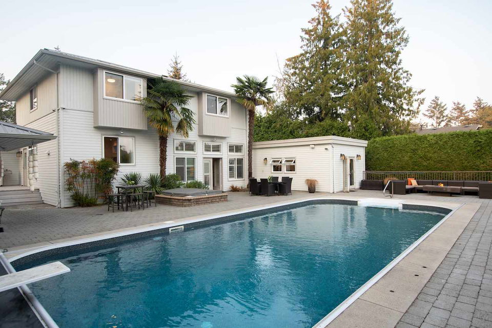 Private luxury estate tucked away on a level 1/2 acre lot in a premier location just off Cliff Dive in Tsawwassen. Enjoy resort style living all year round complete with spectacular home, private south backyard, outdoor pool, natural gas fire-pit, cabana, and plenty of room room for a garden, playground or pickleball court. Completely renovated 5352 sq ft 6 bedroom, 7 bathroom, Californian style home with master on the main, theatre, video security, metal roof, ample parking. This kind of property doesn’t come along often.