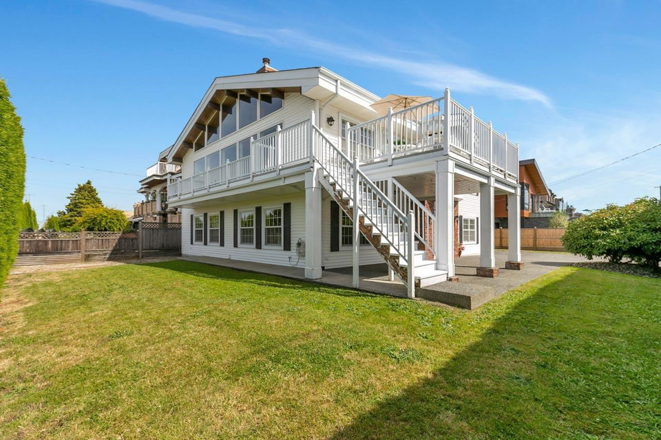 Grand post & beam style w/ vaulted ceiling, waterfront home on a corner lot with expansive views of Fraser River, Ocean & North Shore Mountains. This 4 bdrm, 3 bthrm home was custom built and includes post and beam construction, bricks from a heritage building in Gastown inside and outside, Pella windows that go up or down, powered drapes and an onyx jaccuzi tub. The kitchen features oak cabinets, sub zero fridge and freezer, instant hot water, new garborator and more. This 7268 square foot property also features a large deck overlooking the River right outside the kitchen. Large, extra deep double garage, carport and a large aggregate driveway. Located within the Thompson Elementary and Burnett Secondary school catchment. Open House Jun 26 (Sat) 12(noon) – 4pm & Jun 27 (Sun) 2pm – 4pm.