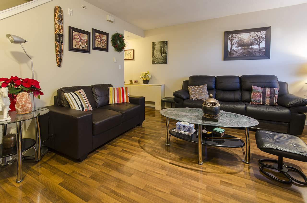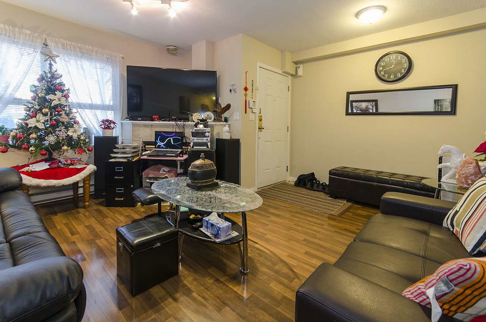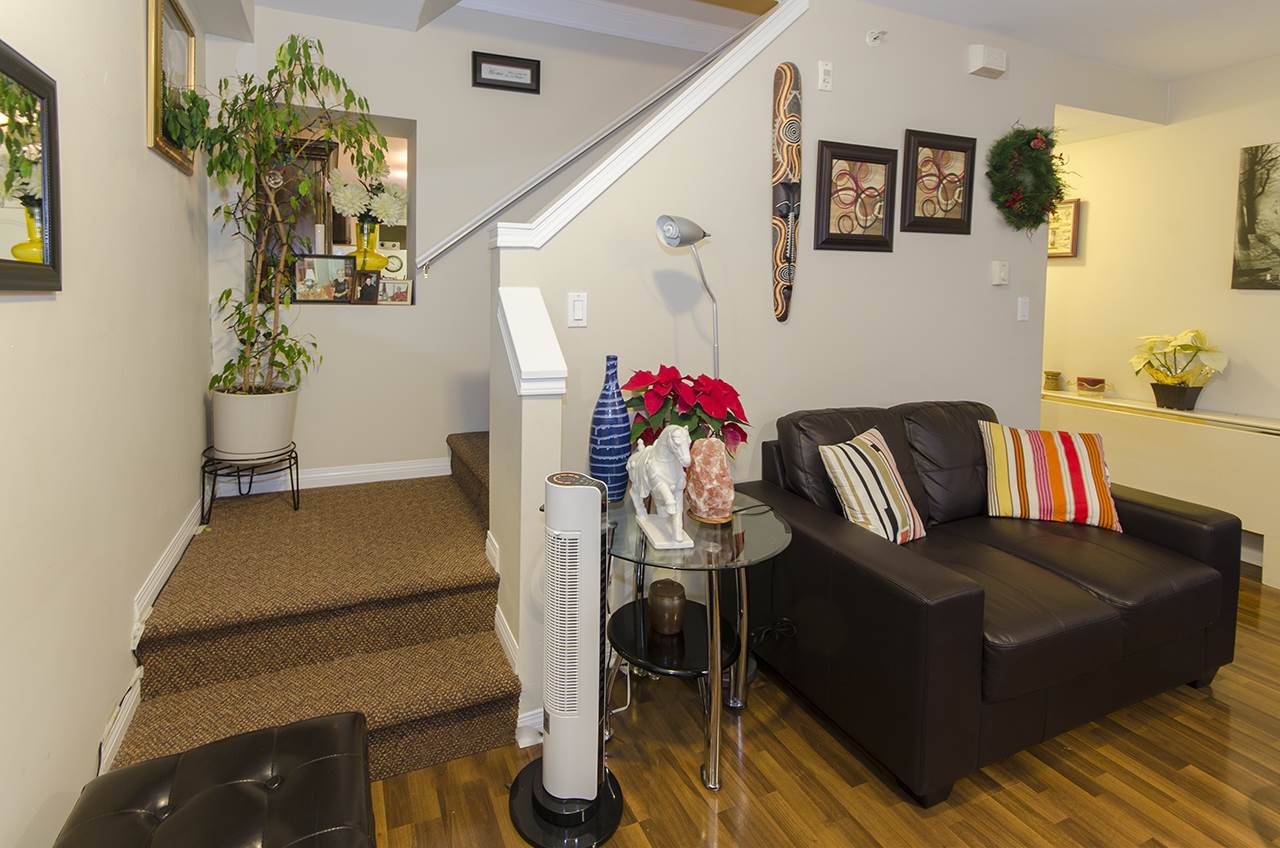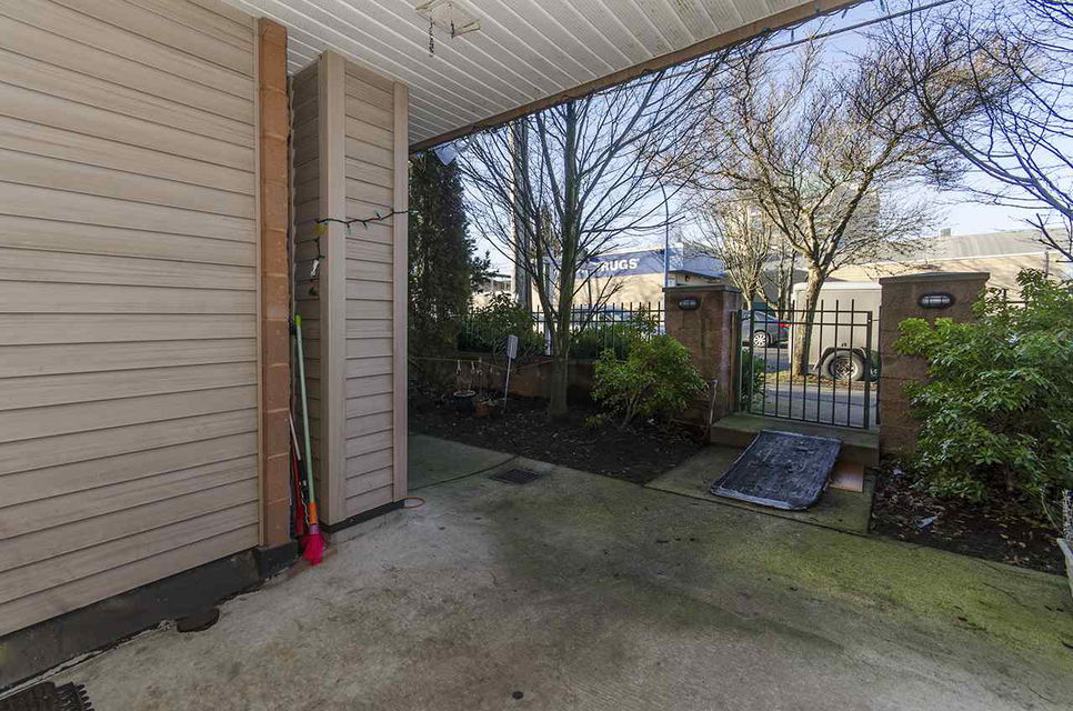 3 BR & 3 bath townhouse near Safeway on Kingsway near Joyce. Ground level entrance from a nice outdoor patio facing W. Main flr has living room, dining, kitchen & 2 pce bath shows nicely w/newer laminate floor. There is a back door opening to the underground parking. Top flr has 3 brs & 2 full bathrooms. Master has a walkin closet & soaker tub. Small outside patio area off the 3rd BR. There is one unit above this home. This is a 28 unit complex, parking incl. 2 Pets, any size ok & Rentals ok. Rented 1750/mo.