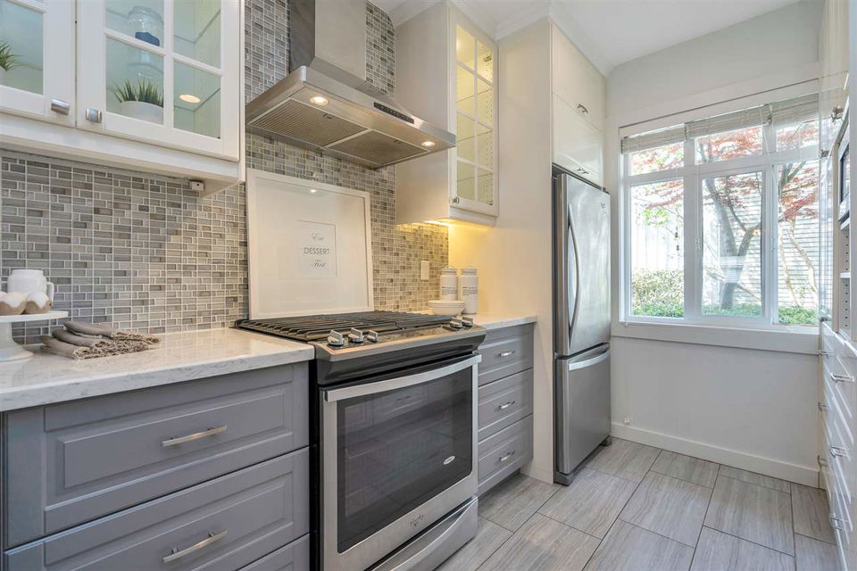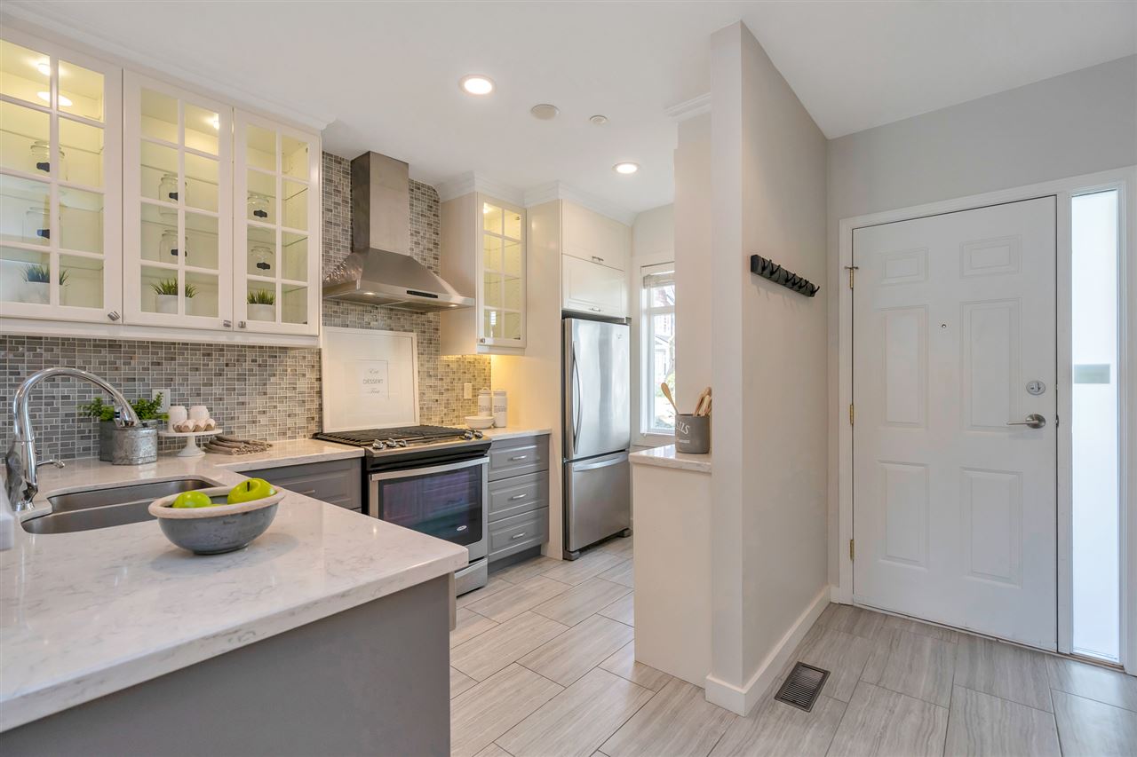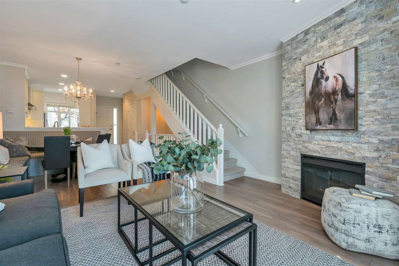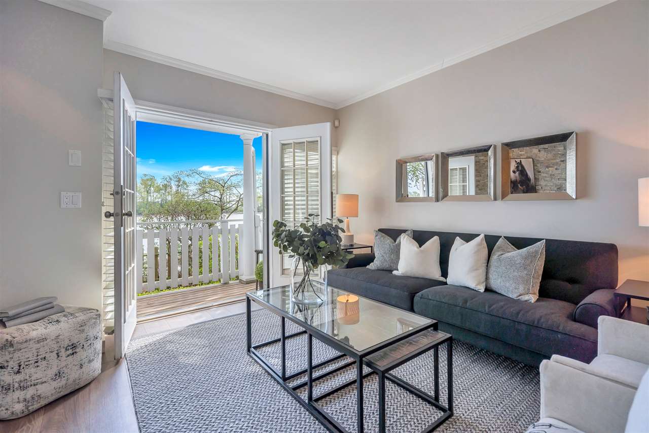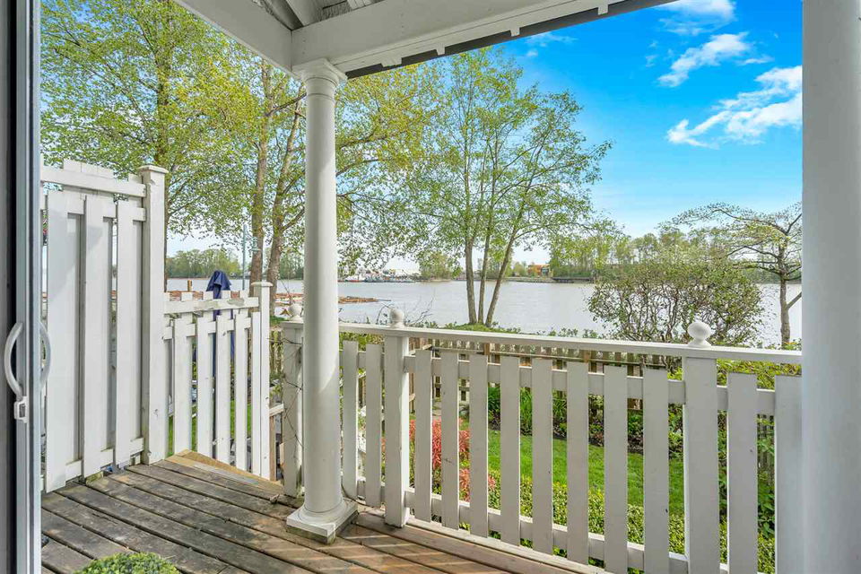 Unique, rarely available WATERFRONT townhome w/SPECTACULAR RIVER VIEWS on 3 levels, just STEPS to the water. This gorgeous 3 bed, 2.5 bath home was thoughtfully renovated, top to bottom. A chef’s kitchen boasts a gas stove, quartz countertops, a deep pantry & looks into the dining area where a Swarovski chandelier hangs over a built-in dining/seating area. The living room has a cozy ledgestone gas fireplace & French doors open up to the south facing deck & riverfront yard. Upstairs features 2 bedrooms w/California closets & a dedicated laundry nook with built-in drying racks & a beautifully renovated bathroom. The master bedroom on the top floor has a built-in bed/shelves, California closets, its own private deck & a gorgeous spa bathroom. Excellent location in the River District with walking trails & parks at your doorstep, shops 5 min away. 2 parking stalls w/direct access to the unit from the underground. Showings Sat 12-3/Sun 12-4 https://www.youtube.com/watch?v=simd2LFht5Y