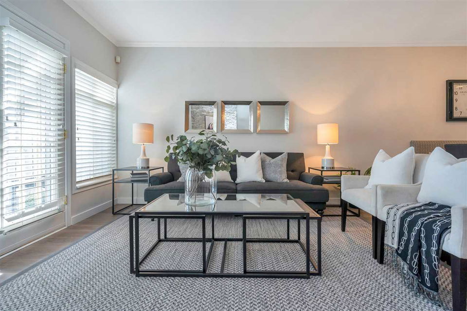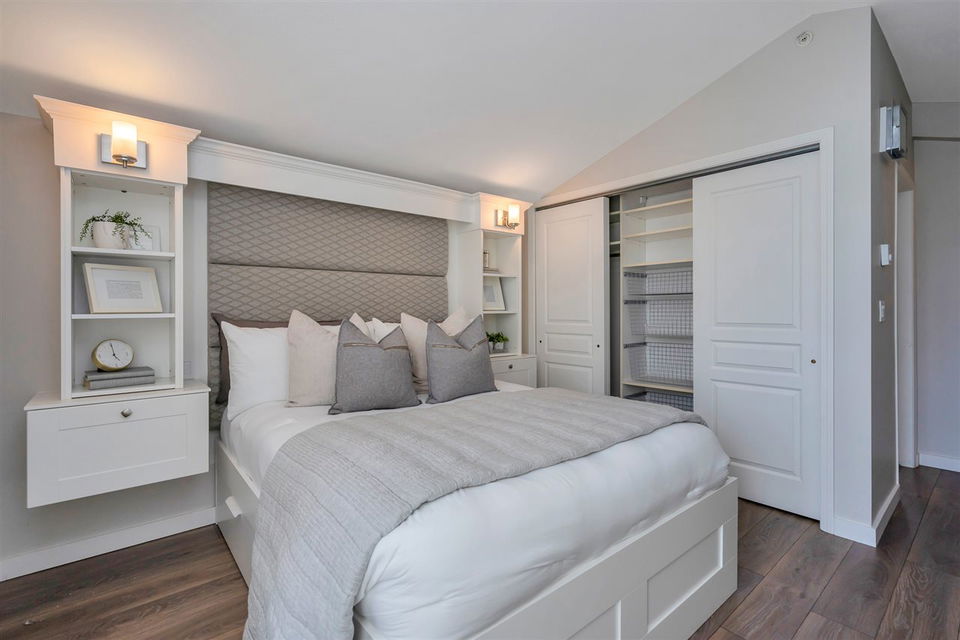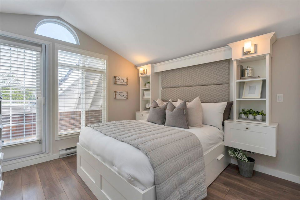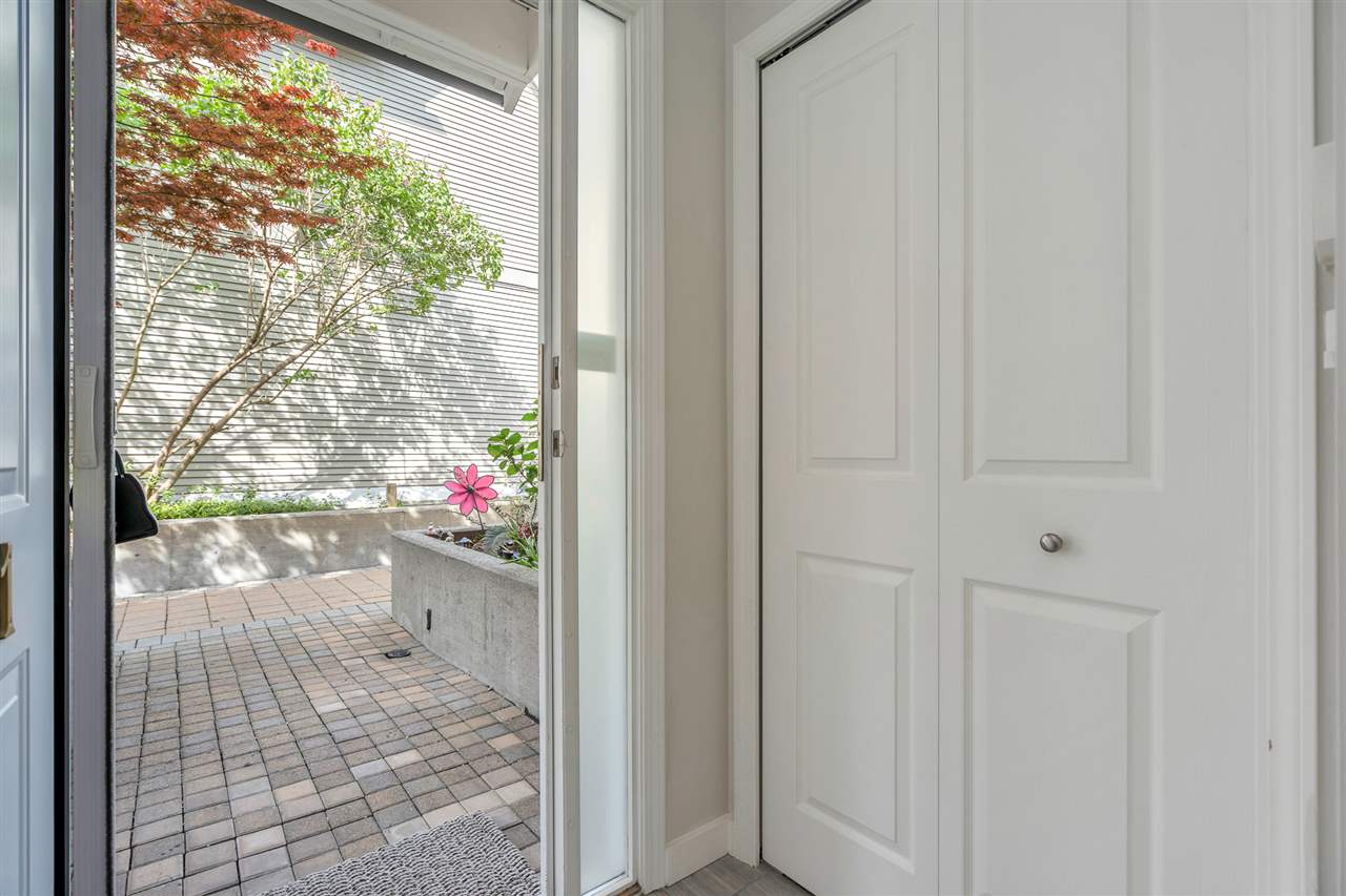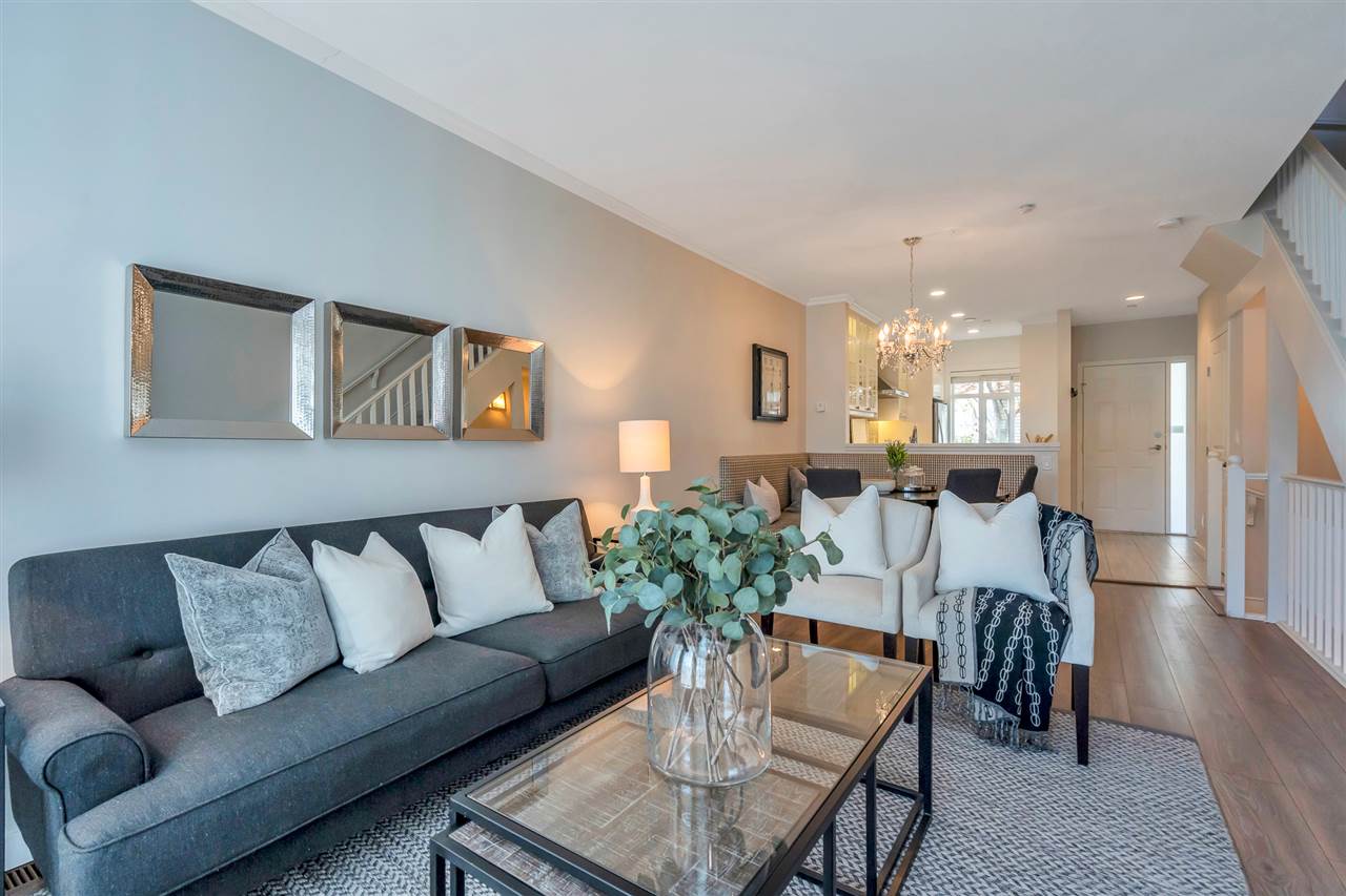 Unique, rarely available WATERFRONT townhome w/SPECTACULAR RIVER VIEWS on 3 levels, just STEPS to the water. This gorgeous 3 bed, 2.5 bath home was thoughtfully renovated, top to bottom. A chef’s kitchen boasts a gas stove, quartz countertops, a deep pantry & looks into the dining area where a Swarovski chandelier hangs over a built-in dining/seating area. The living room has a cozy ledgestone gas fireplace & French doors open up to the south facing deck & riverfront yard. Upstairs features 2 bedrooms w/California closets & a dedicated laundry nook with built-in drying racks & a beautifully renovated bathroom. The master bedroom on the top floor has a built-in bed/shelves, California closets, its own private deck & a gorgeous spa bathroom. Excellent location in the River District with walking trails & parks at your doorstep, shops 5 min away. 2 parking stalls w/direct access to the unit from the underground. Showings Sat 12-3/Sun 12-4 https://www.youtube.com/watch?v=simd2LFht5Y