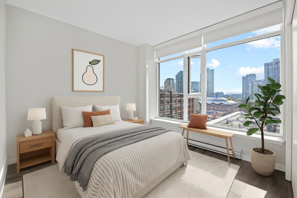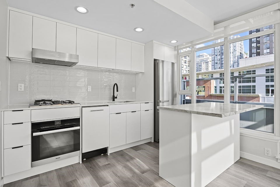 Welcome to H&H in the heart of Yaletown! This bright south-east facing corner 1-bedroom + den home features a wrap-around outdoor balcony with new flooring — the perfect spot to enjoy your morning coffee and take in downtown’s night light views. Inside, the home has been tastefully updated with Miele kitchen appliances, granite countertops, new flooring, fresh paint, an updated bathroom, built-in closets, new laundry, and blinds. A functional open layout with abundant natural light makes this turnkey home ideal for first-time buyers, downsizers, or investors, steps from Yaletown’s best restaurants, shops, SkyTrain, and the Seawall. call for viewing.