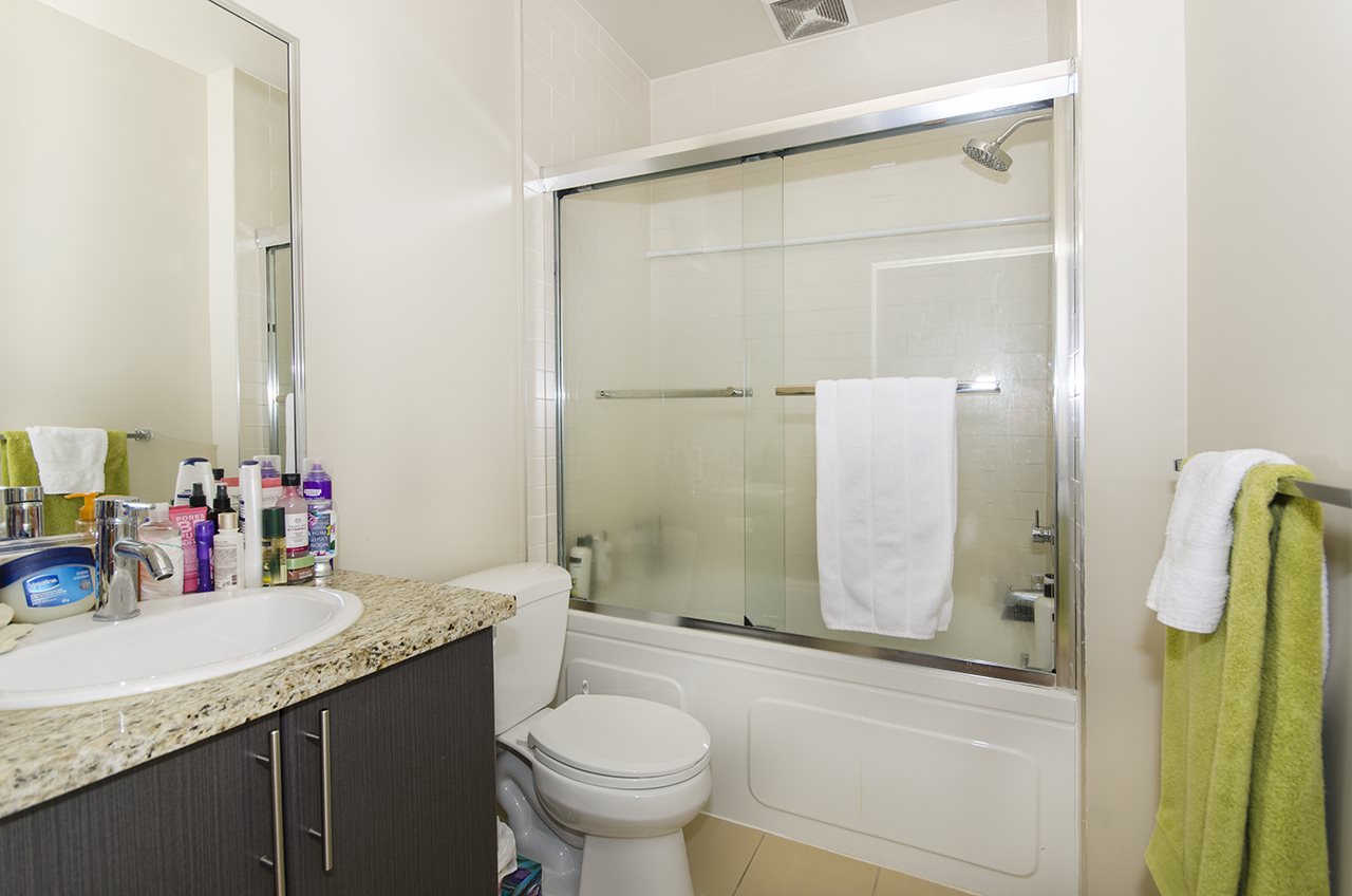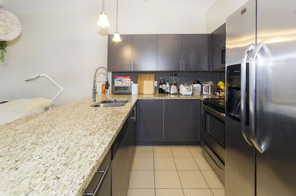 Bright, spacious, top floor 2 bed 2 full bath plus large DEN at the SCENA conveniently located near shopping, schools, parks, community centres & much more. This 2 bdrms unit features a square open floor plan w/no wasted space, a functional kitchen layout w/maximized cabinetry, insuite laundry, laminate flooring, 9 ft ceilings & an oversized balcony. Relax in your own private steam shower in the comfort of your own home. Full 2-5-10 warranty remain. Rentals & pets allowed. Includes 1 parking spot. Tenanted $1500/m